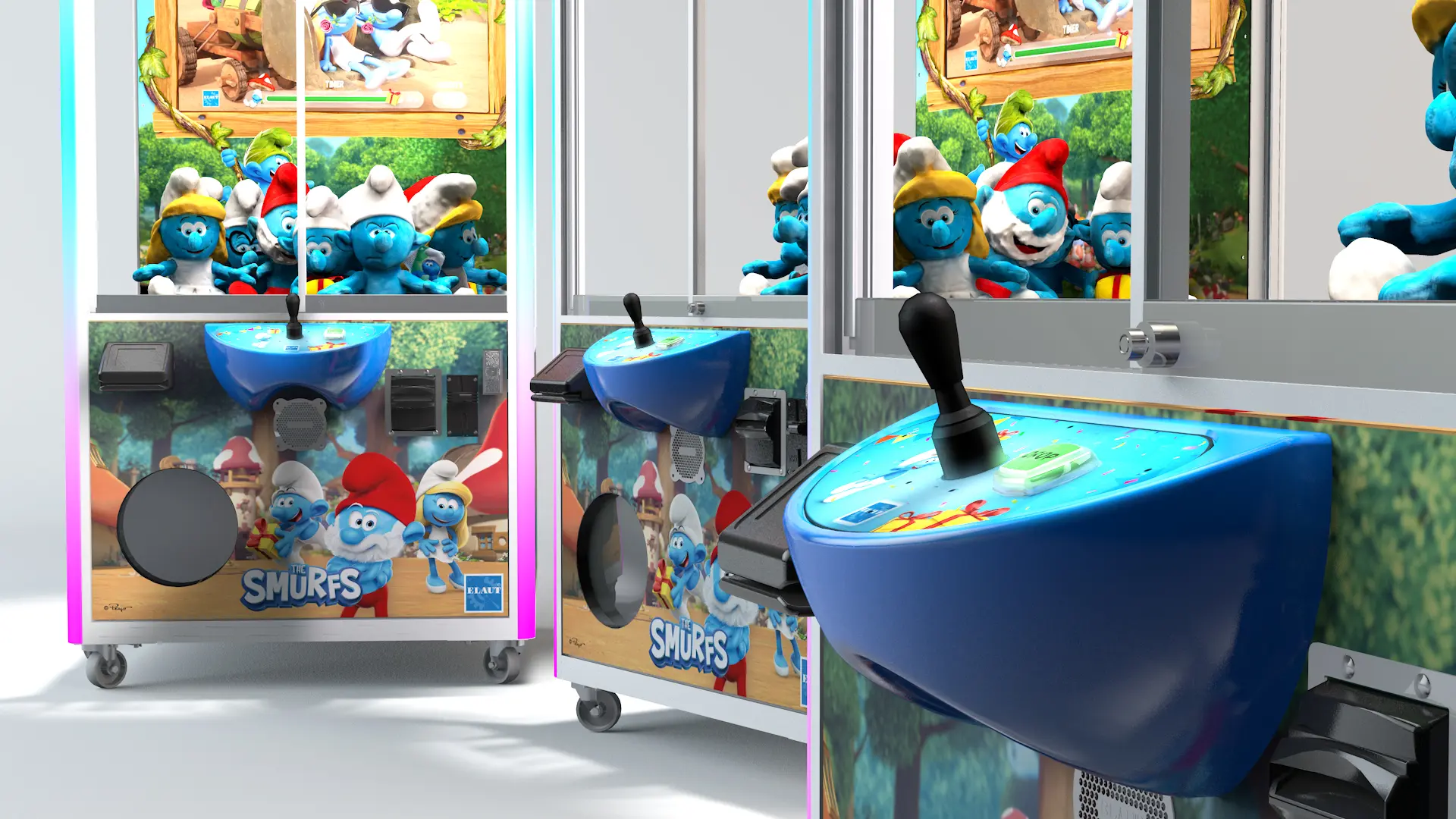 The Smurfs 1-player is the first fully branded licensed claw machine.
